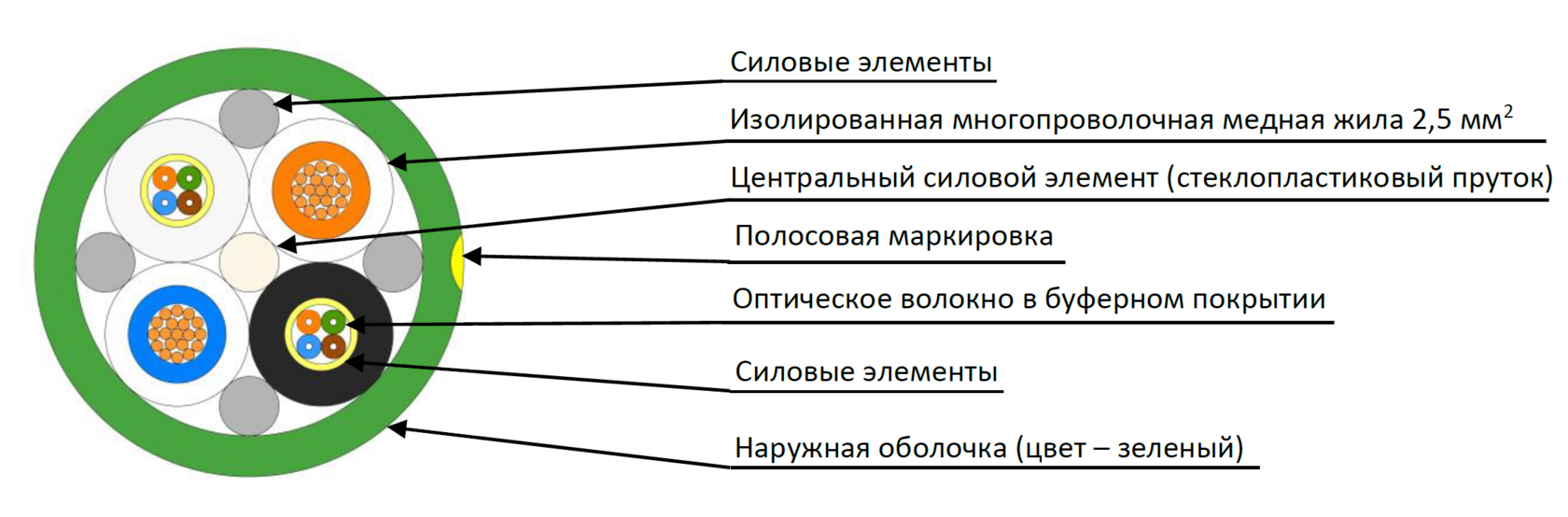 *Допускается повышение коэффициентов затухания, нелинейный наклон линии рефлектограммы, ступеньки на первых 500 м, связанные с намоткой кабеля на барабан.