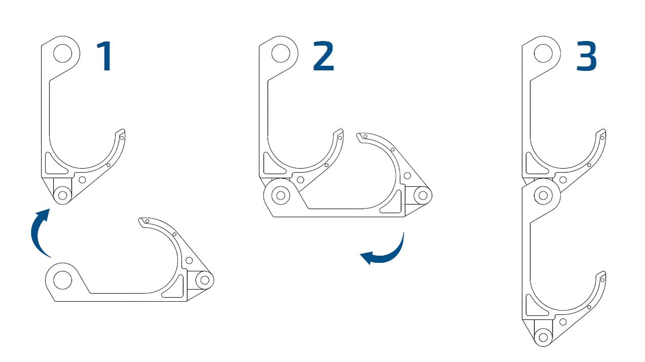 Подвесы могут применяться по одному, а также собираться в вертикальный ряд. Соединение осуществляется без применения дополнительных элементов и специального инструмента. Принцип сборки больших и малых подвесов идентичен.